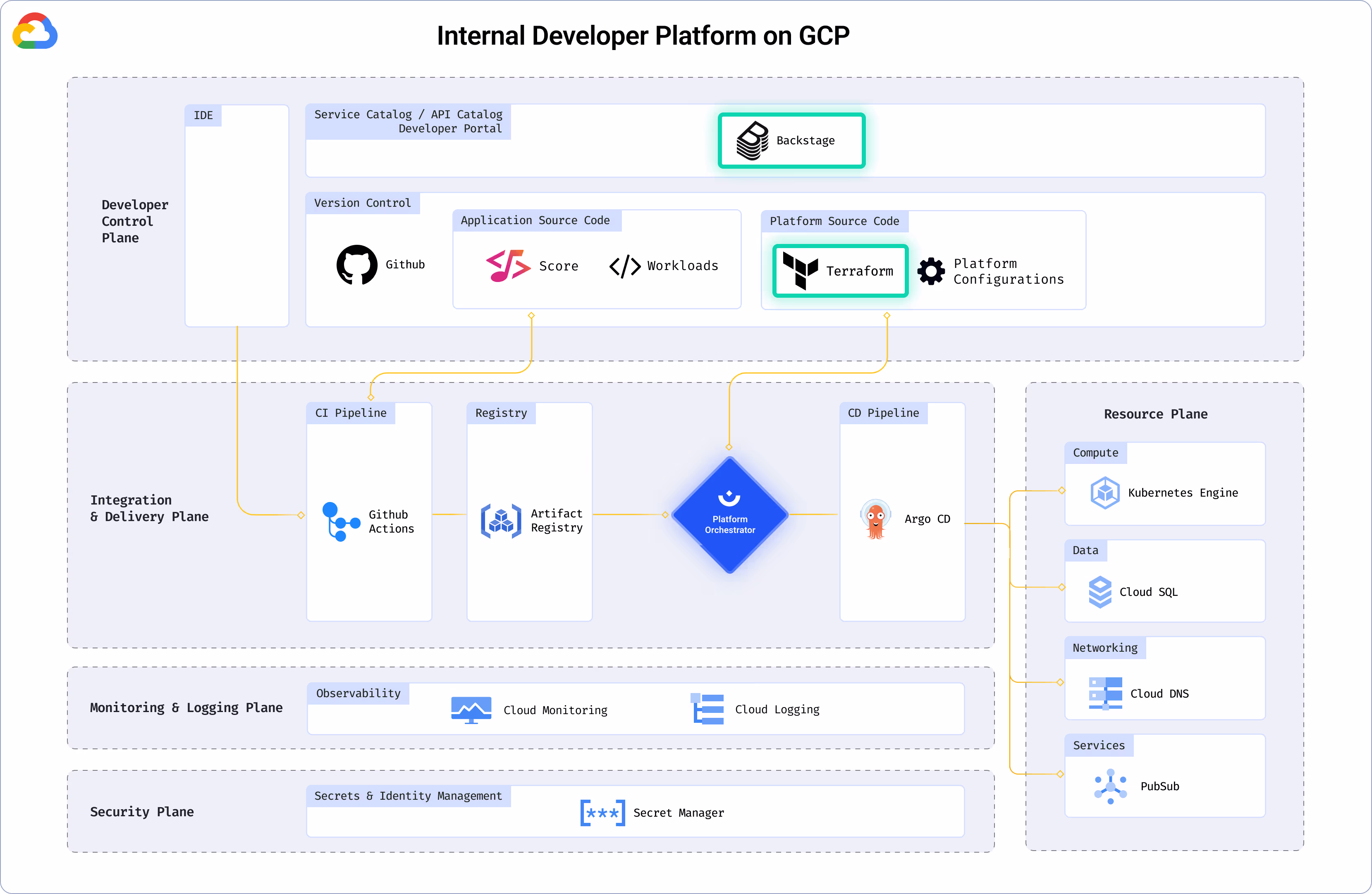 This reference architecture shows how top performing teams combine Backstage, Terraform and Humanitec to build an enterprise-grade Internal Developer Platform.